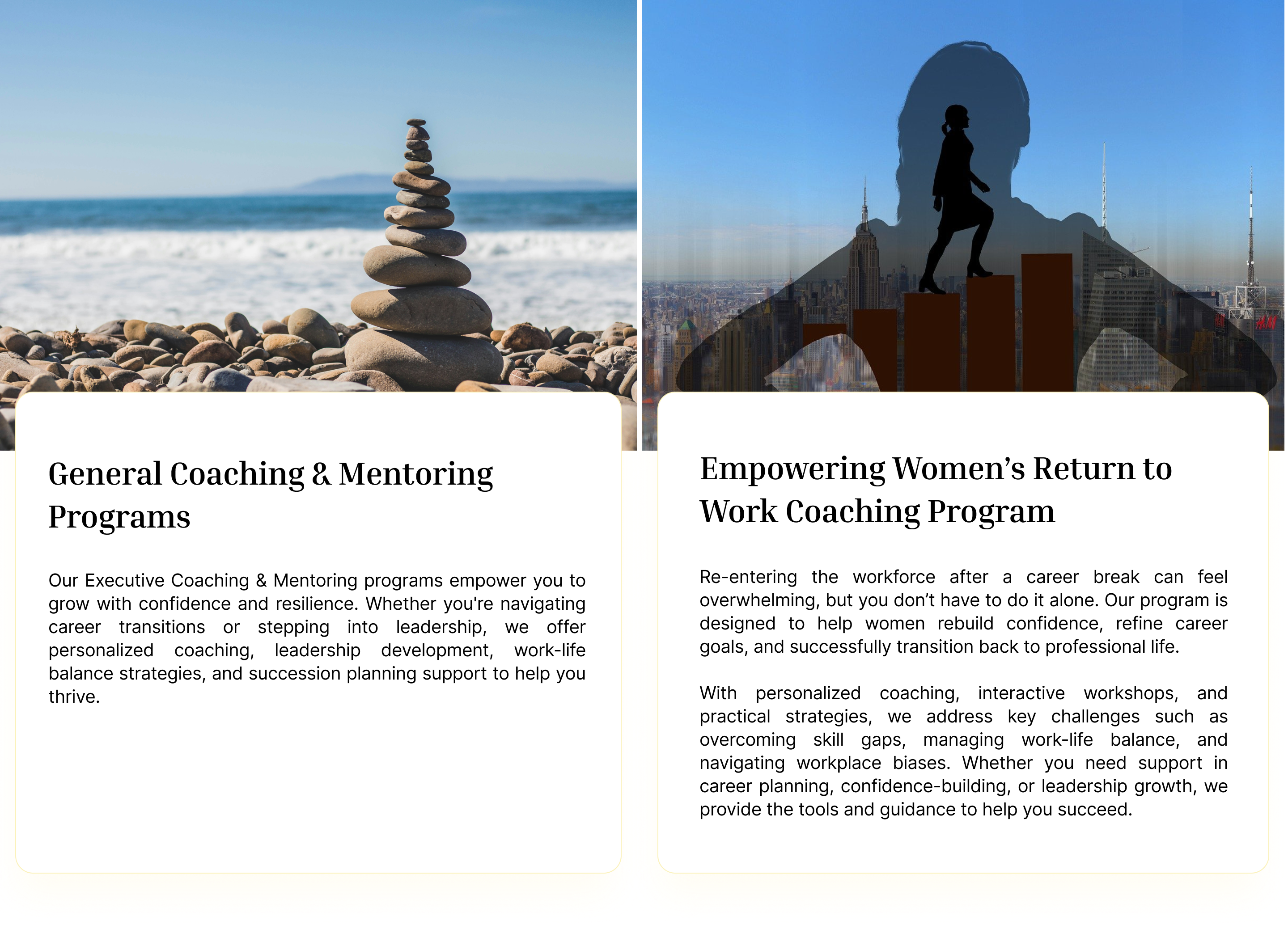 Choose from our comprehensive coaching programs designed for different stages of executive development